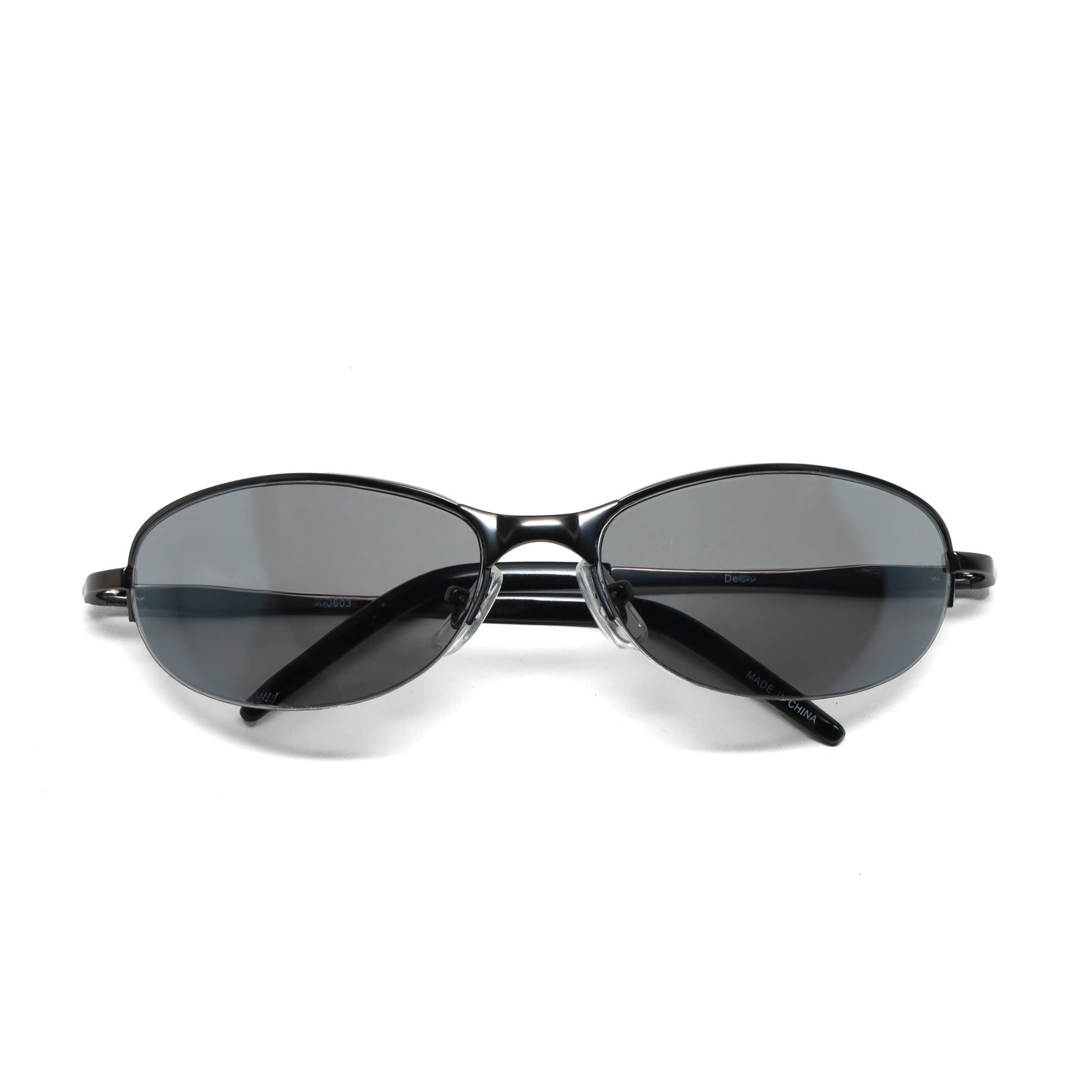 //Style 603// Vintage Late 90s/Early 2000s Frameless Grey Oval Sunglasses