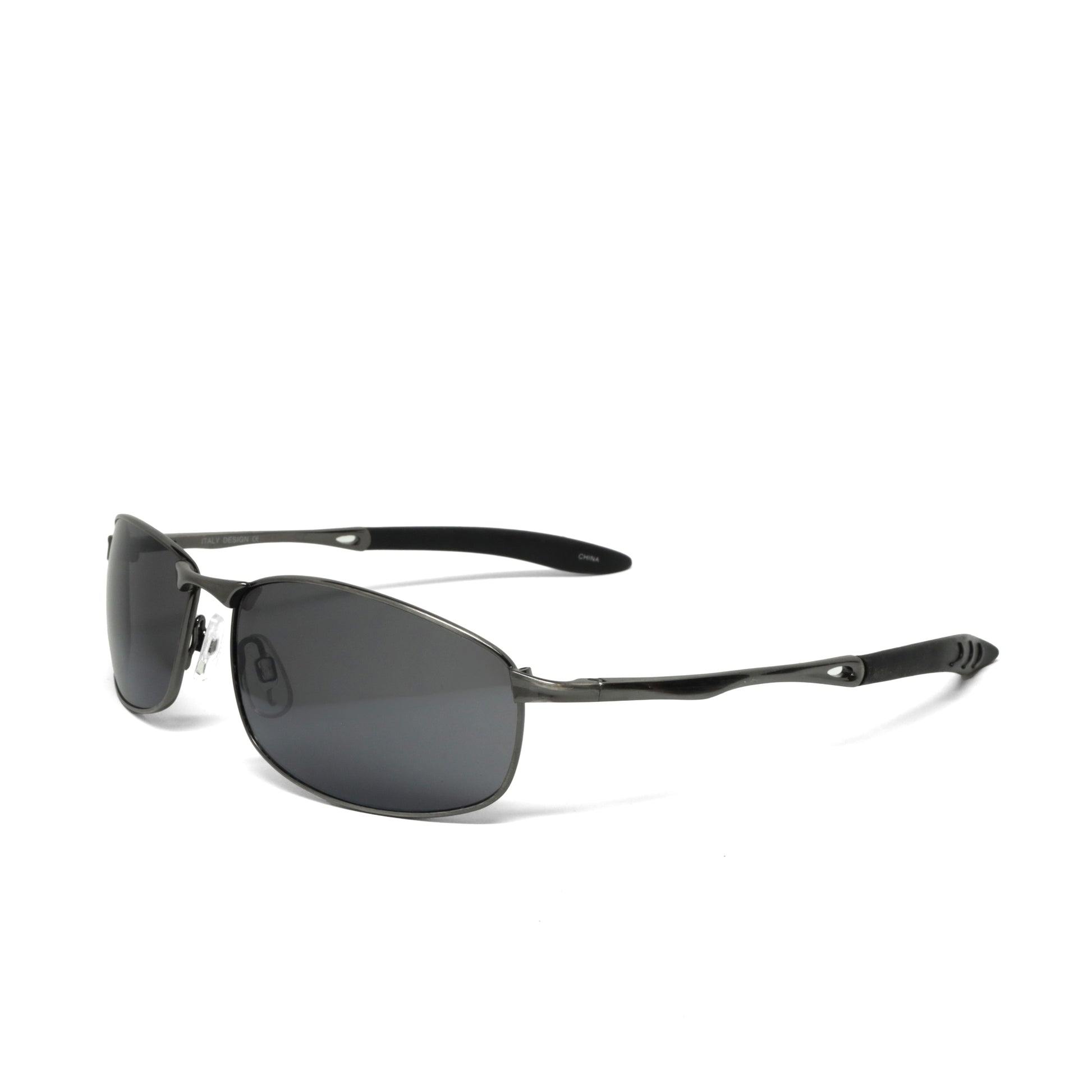 Sleek 90s-inspired wraparound sunglasses with polarized lenses and wraparound wire frames. The angled design captures authentic vintage style while reducing glare for everyday wear.